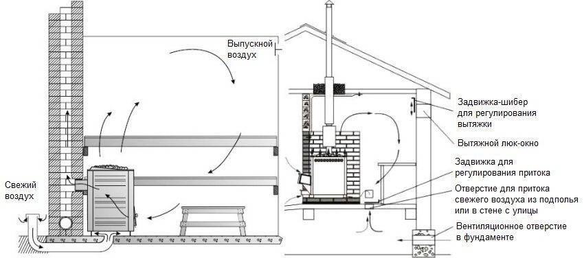 Основные схемы устройства вентиляции в бане