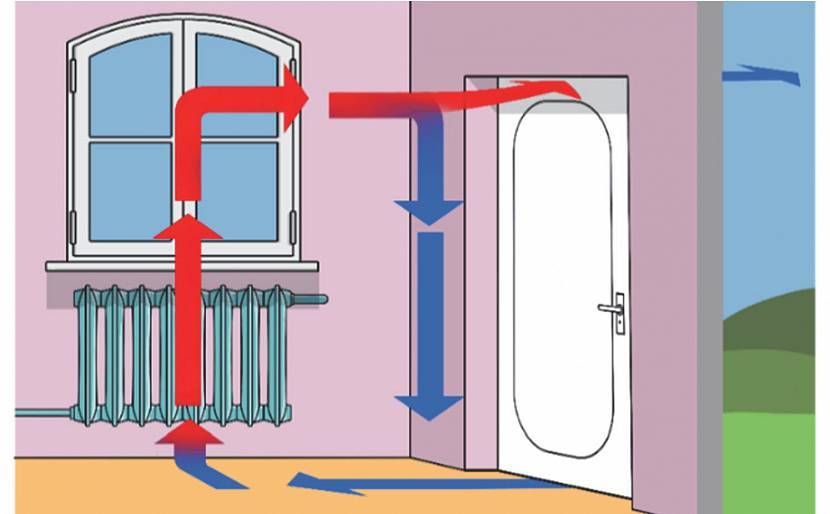 - в любом помещении с любым типом обогрева воздух движется – плотный и тяжелый холодный опускается вниз, теплый поднимается наверх;