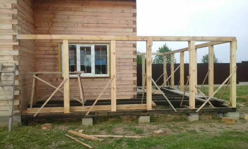Так как при постройке веранд чаще всего используют дерево, то рассмотрим строительство каркаса из этого материала. Удобнее всего выполнять работы в такой последовательности:
