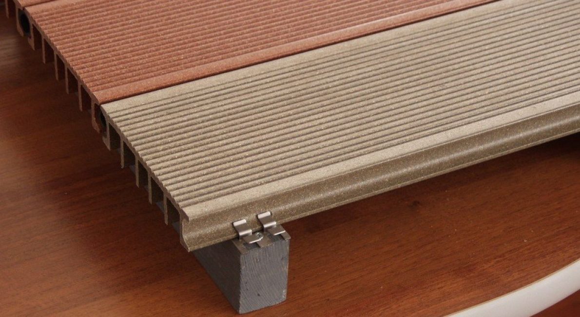 - Из полимерной доски – пустотелые полимерные панели, копирующие цвет и фактуру натуральной древесины. Их крепят, так же как и обычные деревянные доски, но этот материал намного прочнее, стойкий к механическому воздействию и дольше служит.