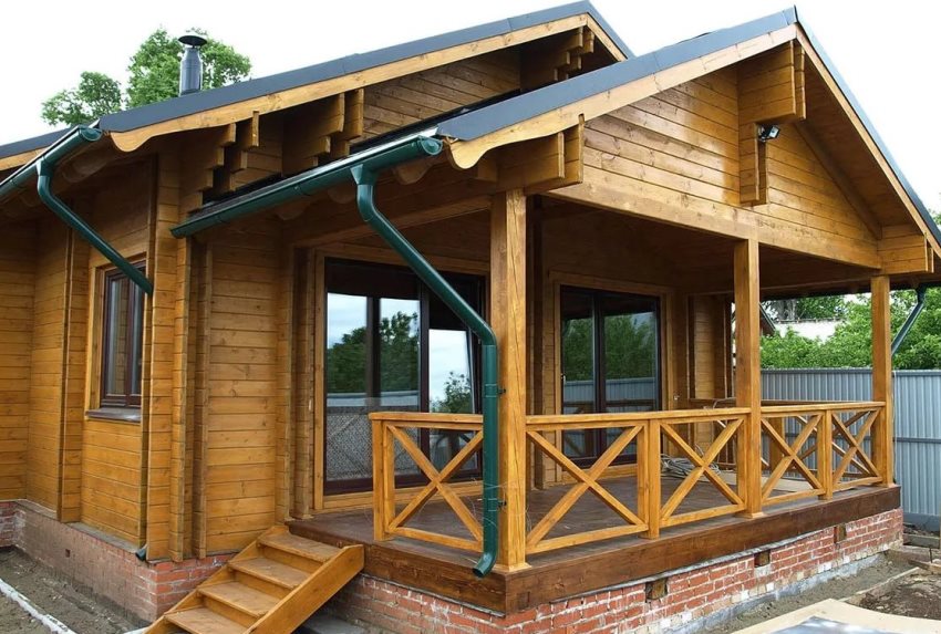 Сочетается с верандами увеличенной массы, построенных на блоках, кирпичах. Но некоторые владельцы предпочитают сочетания и с другими материалами.