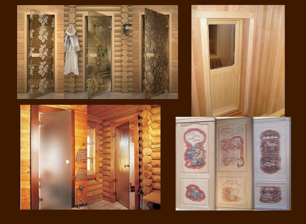 Баня – это не одно помещение, следовательно, и дверей там тоже несколько. Их можно разделить на входные уличные двери для бани и двери, находящиеся внутри помещения.