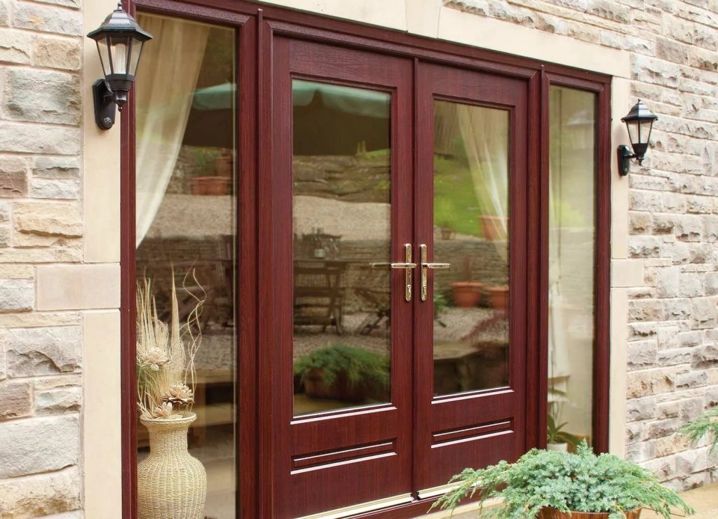 Внешнее оформление ПВХ дверей от современных производителей устроит самого требовательного владельца коттеджа. Здесь есть всё – от классического белого оформления до имитации дерева и инкрустаций, если вы такое желаете.