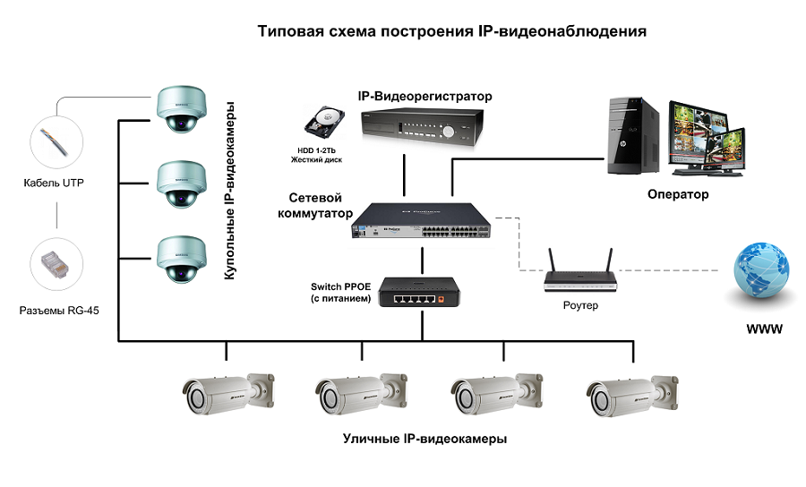 В цифровых системах для связи камер с компьютером или видеорегистратором используются локальная сеть Ethernet либо Интернет. Благодаря этому их просто монтировать, расширять и использовать.
