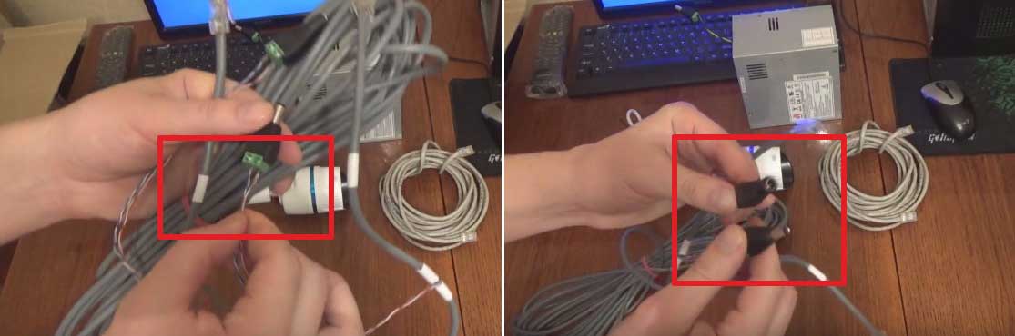 Но чтобы этого не делать к камере можно пустить питание прямо по витой паре. Для этого используйте коричневую и синюю жилы.