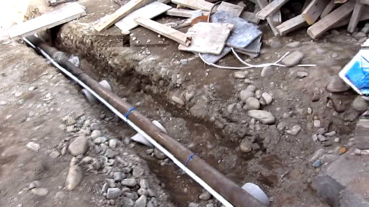 Отрывка траншеи для канализационных труб должна иметь как можно меньше поворотов и изгибов, особенно если они меньше 90 градусов. Дно траншеи должно иметь одинаковый клон на всем протяжении от фундамента здания – наивысшей точки входа стоков в систему канализации и до момента примыкания трубы к септику – нижней точки трубопровода. При отрыве траншеи обеспечивается выравнивание дна траншеи, и уплотнение грунта особенно там, где есть вероятность его ослабления. Дополнительно гравийная подушка в 15-25 см насыпается в песчаных и насыпных грунтах, этот элемент обеспечит большую надежность и прочность основания для труб.