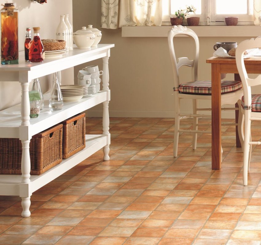 Сырьём для производства бюджетного синтетического линолеума служит поливинилхлорид. Несмотря на это, качественное покрытие, соответствующее требованиям ГОСТа, безопасно для здоровья человека и может быть использовано для отделки кухни.