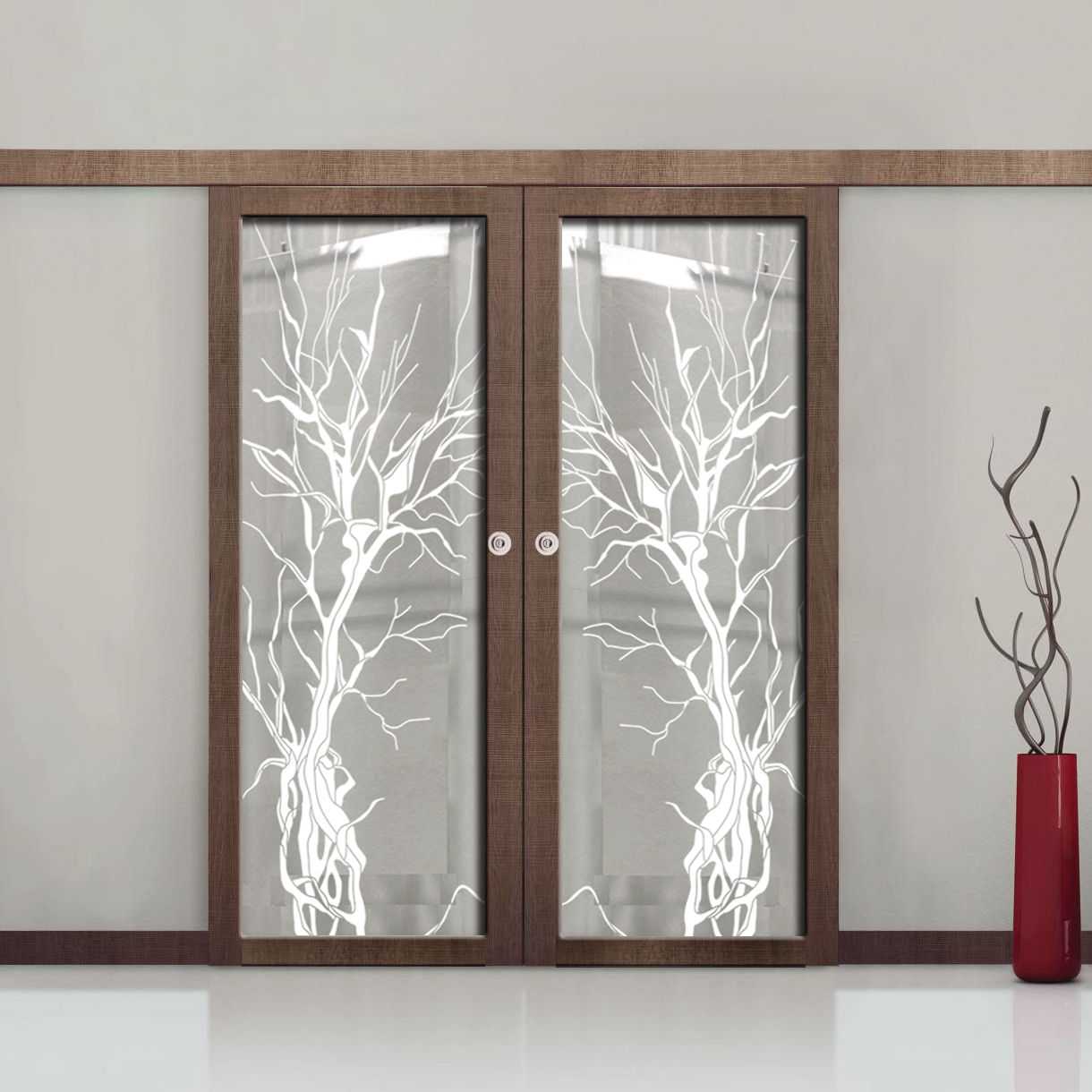 Главное отличие пескоструйного декора – целостность стеклянного полотна, украшенного неброскими витражными иллюстрациями. В интерьерах такое декоративное оформление оптимально подходит крупноформатным раздвижным дверям, способным максимально пропускать свет. Невесомые конструкции с едва заметными очертаниями благодаря декору создают ощущение воздушности, визуально скрадывают условную границу между комнатами. Такого визуального эффекта невозможно добиться при установке других модификаций дверей: массивных полотен из металла или дерева.