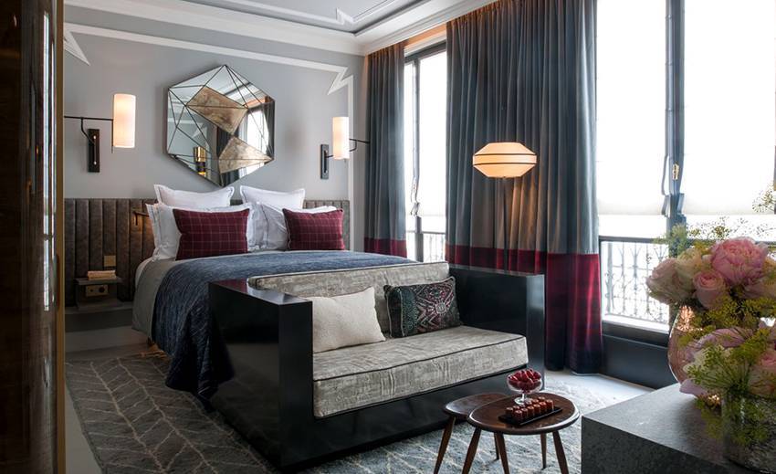 Скрытое обустройство карниза на потолок обеспечивает нестандартное украшение для комнаты. Шторы беспрепятственно свисают с потолка, создавая эффект парения в пространстве. Благодаря такому приему возникает впечатление, что помещение стало выше. Это осуществляется за счет естественного продолжения потолочной поверхности, интерьеру придается завершенность, гармоничность и аристократизм.