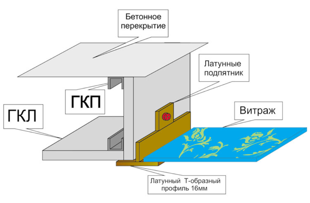 Существует три способа крепления витража к потолку: