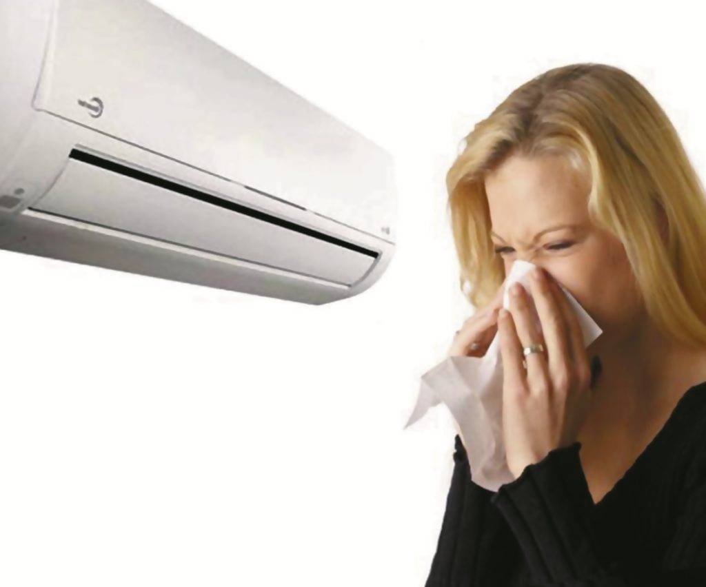 - Работающий кондиционер высушивает воздух в помещении. В первую очередь это влияет на слизистую оболочку носа, а также на кожу. Особенно страдают люди с дерматологическими проблемами;