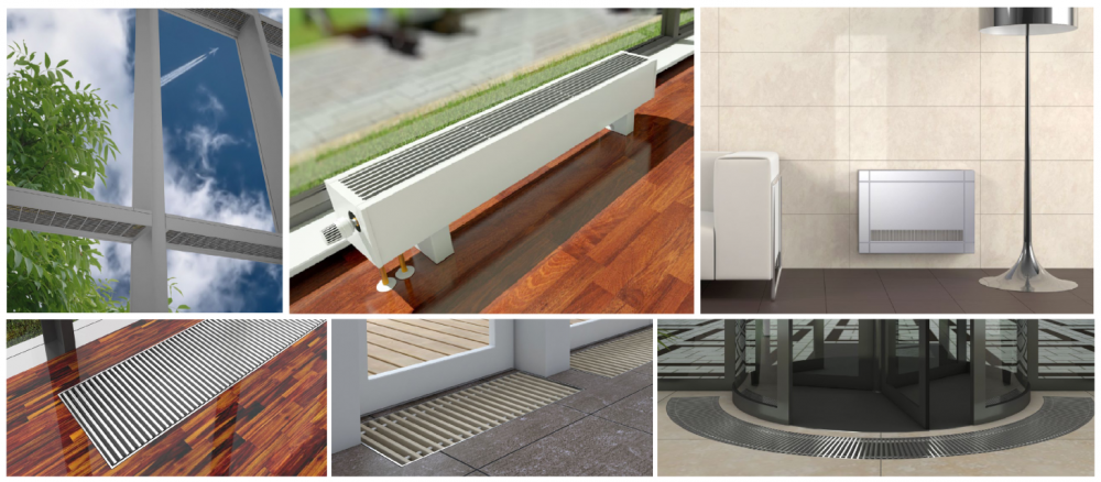 Основное преимущество конвекторов, встраиваемых в пол, — скрытый монтаж, который дает широкие возможности для смелых дизайнерских решений. Это подходящий вариант для оснащения витрин и панорамного остекления.