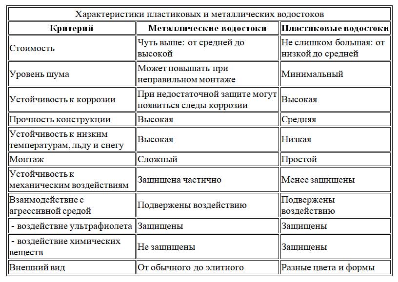 Мы сравнили водосливы из металла и пластика по различным параметрам. В результате оказалось, что на вопрос, какой водосток лучше пластиковый или металлический однозначного ответа нет – где проигрывает один из них, выигрывает другой. Просто нужно сравнить, какие из параметров для вас важнее, и сделать свой выбор.