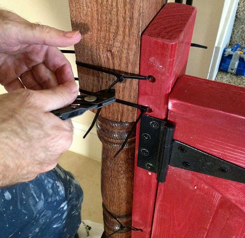 Можно сделать ворота безопасности своими руками, приобретя крепёжные устройства для стен или перил, придумав надёжное запирающее устройство и найдя подходящие стойки из древесины или металла.