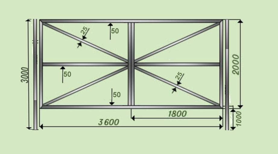 Схема или чертеж распашных ворот необходим для упрощения расчета количества материала и оценки жесткости конструкции.