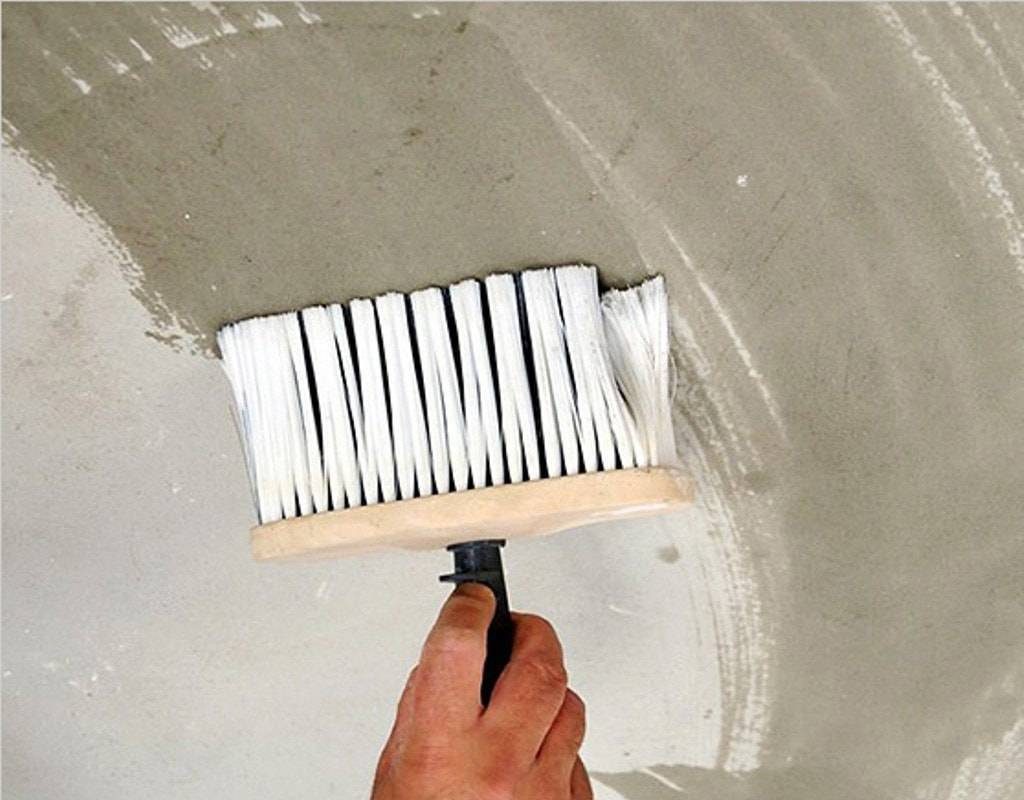 Выбор грунтовочной облицовки следует делать, исходя из типа потолка и штукатурного раствора. Так, для бетонной поверхности рекомендуется универсальная смесь с антисептиками, препятствующими образованию плесени и грибка. Не исключается применение акрилового состава, который хорошо подходит поверхностям из бетона или кирпича. Гипсокартону или пено-газобетону с перепадом менее 3 мм. лучше использовать грунтовку глубокого проникновения либо бетоноконтакт. Помимо повышения адгезии, они обладают неплохими водоотталкивающими свойствами.
