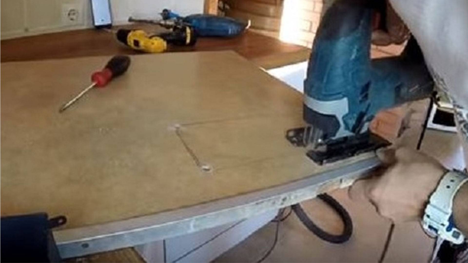 - Подготовить необходимые инструменты: шуруповерт, дрель, фреза с подходящей насадкой, электролобзик с пилкой по дереву, метр или обычная линейка, крестовая отвертка, строительный клей, напильник, простой карандаш.