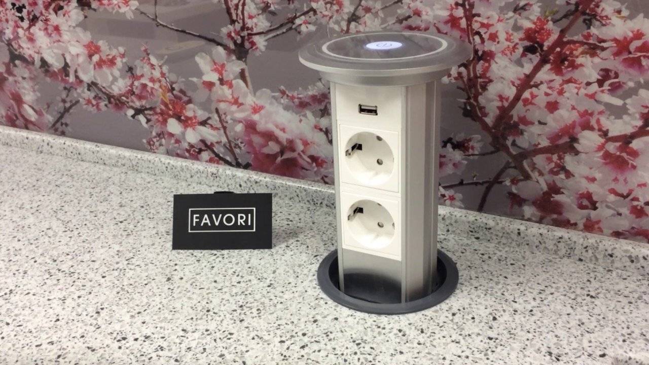 По электротехническим параметрам розетки, скрытые в столешнице или шкафу, мало отличаются от обычных. Их главное достоинство в другом: блок розеток в сложенном состоянии спрятан внутри стола или любой кухонной мебели. При этом поверхность столешницы может с некоторыми ограничениями использоваться в обычном режиме.