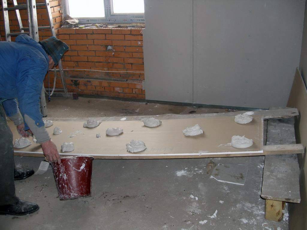 Приклеивание гипсокартона