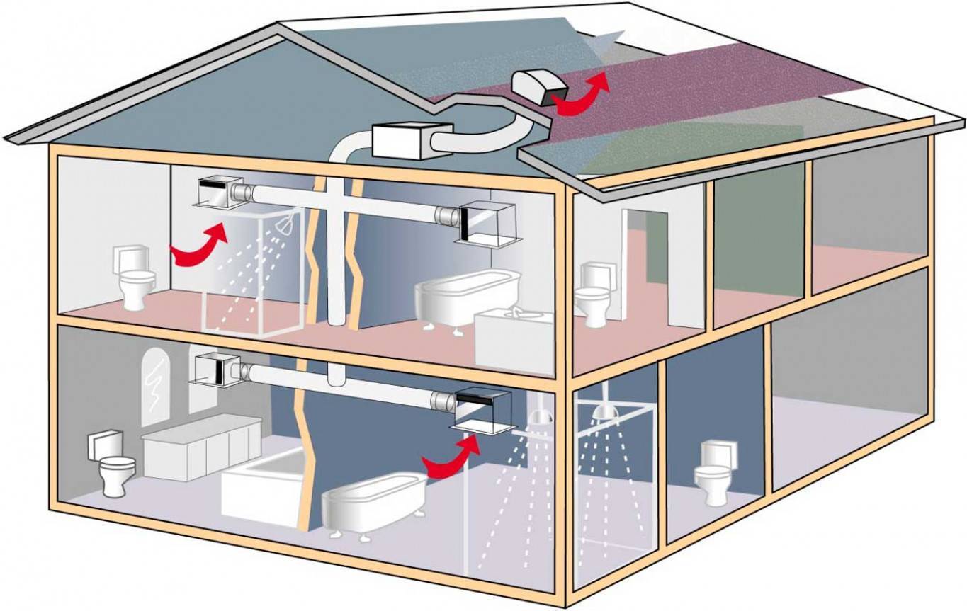 Воздуховодами являются трубы, которые проходят через чердак или стену. Вентиляторы необходимы для усиления тяги в воздуховоде.