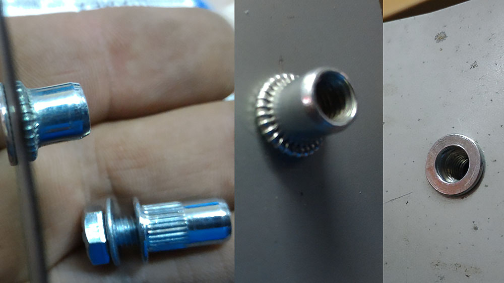 Вот и всё, крепление с помощью винтовой заклёпки осуществлено. Если необходимо, можно укрепить соединение с помощью болта и гайки или установить любой другой элемент конструкции с использованием болта, так как на поверхности появилось резьбовое крепление.