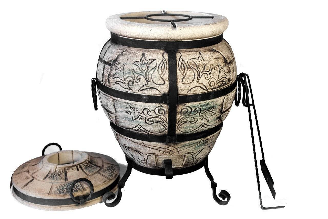 Жаровня, имеющая вид большой емкости в форме бочки или кувшина. Приготовление пищи в ней происходит нестандартно – под закрытой крышкой.