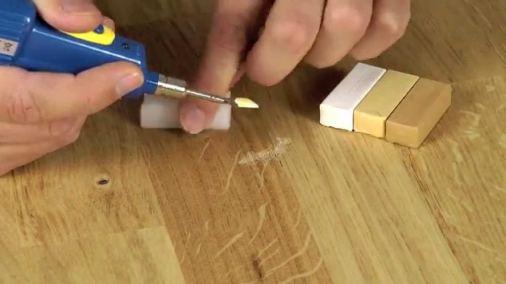 Есть еще один способ заделки царапин на ламинате. Для этого используется сверхтвердый воск, который, кстати, вместе со всеми приспособлениями может быть включен в ремонтный набор. Для проведения процедуры понадобится специальный плавитель.