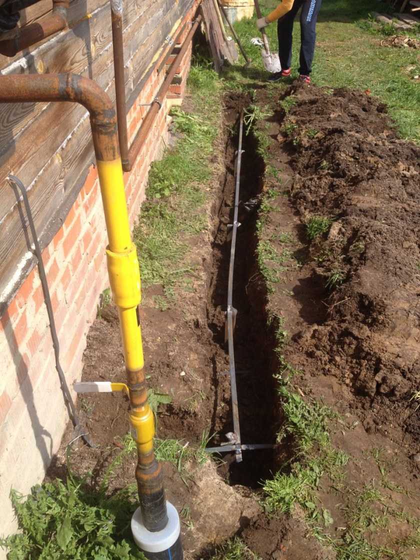 После выполнения всех сварных работ полученную траншею можно засыпать. Однако перед этим рекомендуется залить траншею соляным раствором в пропорции 2–3 пачки соли на ведро воды.