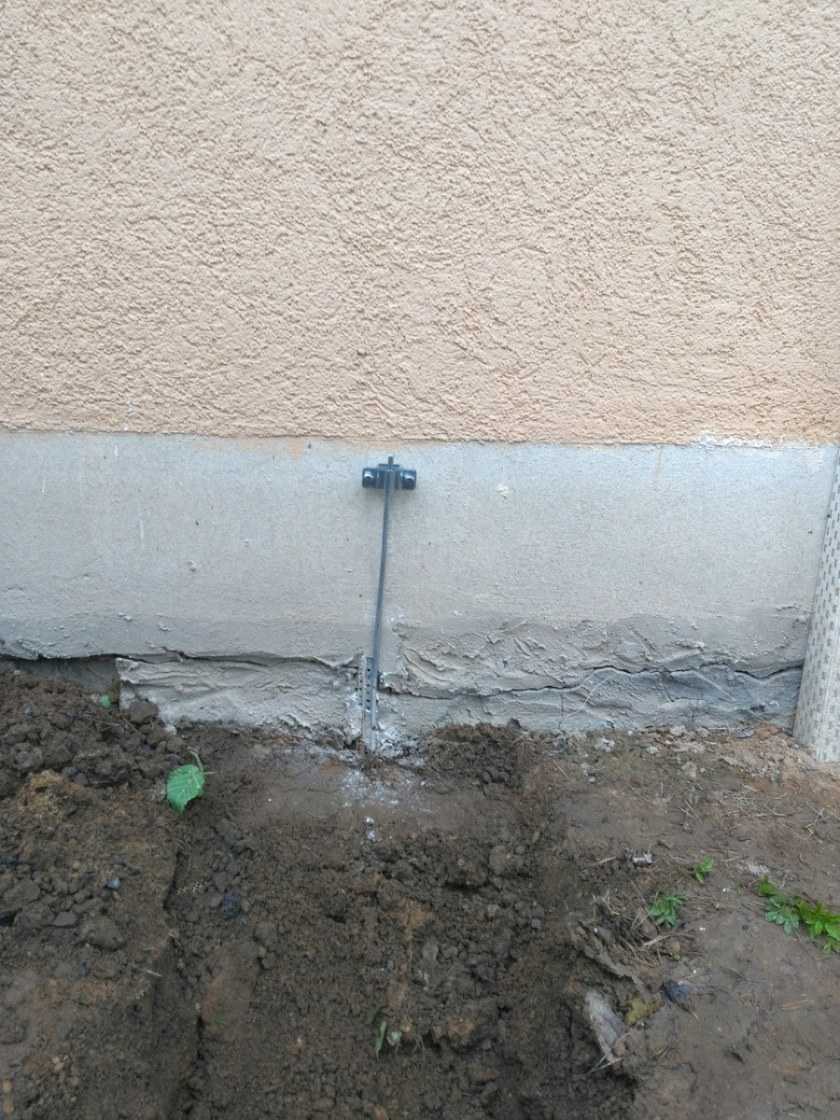 Там, где полоса будет выходить на фундамент на высоте 0.3–1 мот земли, необходимо приварить болт М12 (М14) к которому в дальнейшем будет подключено заземления дома.