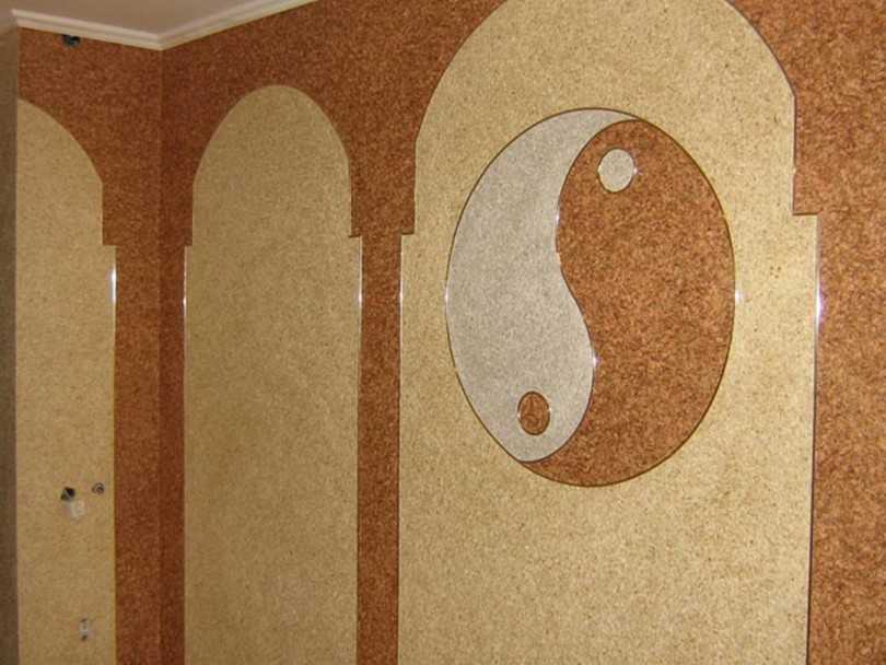 Это покрытие идеально для неровных стен со сложным рельефом: и недостатки скроет, и наносить легко. В принципе, клеить жидкие обои можно в жилых, и в неотапливаемых, и во влажных помещениях. Но в ванной или на кухне их придется покрывать защитным лаком, что удорожает ремонт и лишает материал одного из главных свойств – микропористой структуры, позволяющей «дышать». Логичнее в таких помещениях использовать другие стеновые покрытия.