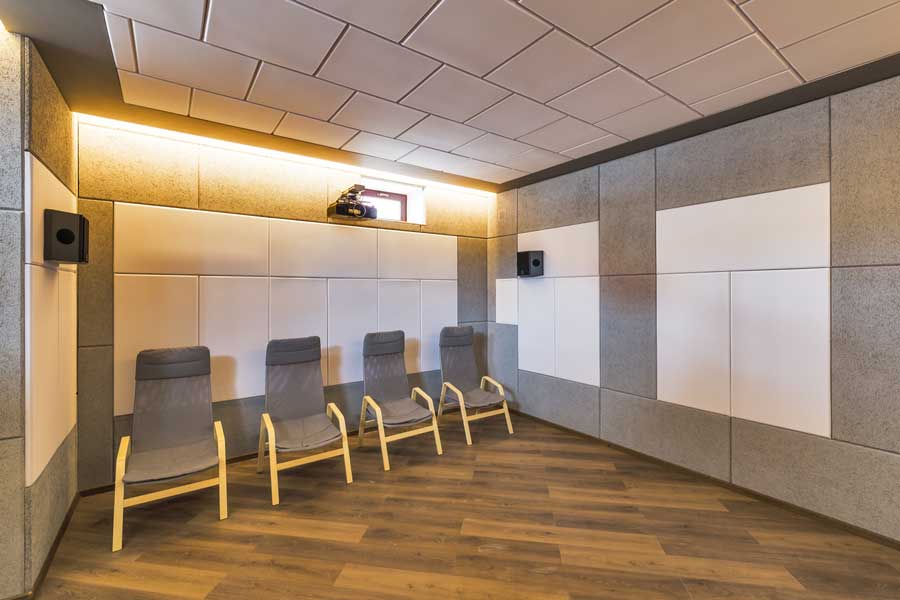 Панели из меламина с высокой степенью пожарной безопасности отлично подходят для студий звукозаписи и других помещений с большой звуковой нагрузкой.