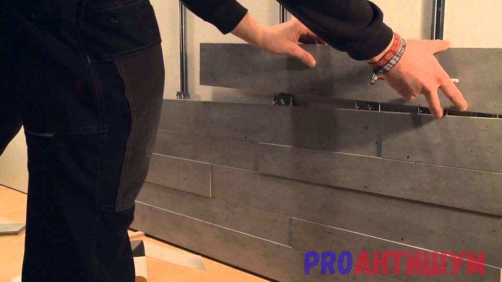 Такие звукоизоляционные панели тяжелые. Он может весить до 20 килограммов. Процесс установки выглядит так: